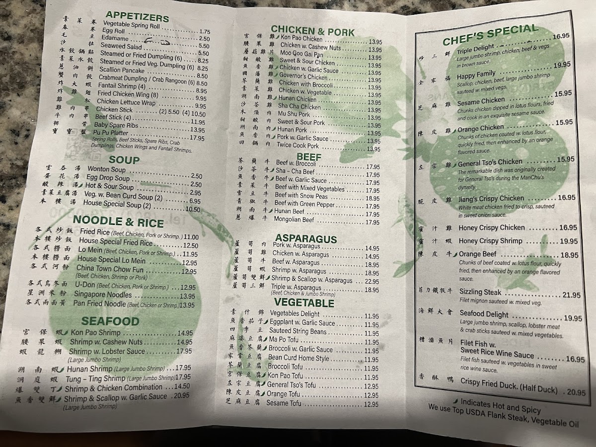 Jiang's Chinese Restaurant Menu